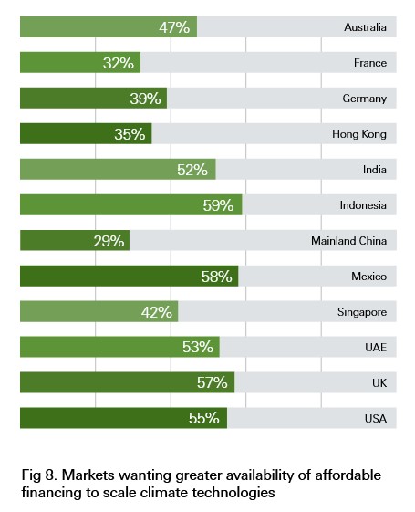 No obstante, el informe subraya que el 95% de los encuestados considera que aún existen insuficientes soluciones tecnológicas de mercado para apoyar completamente las transiciones climáticas.